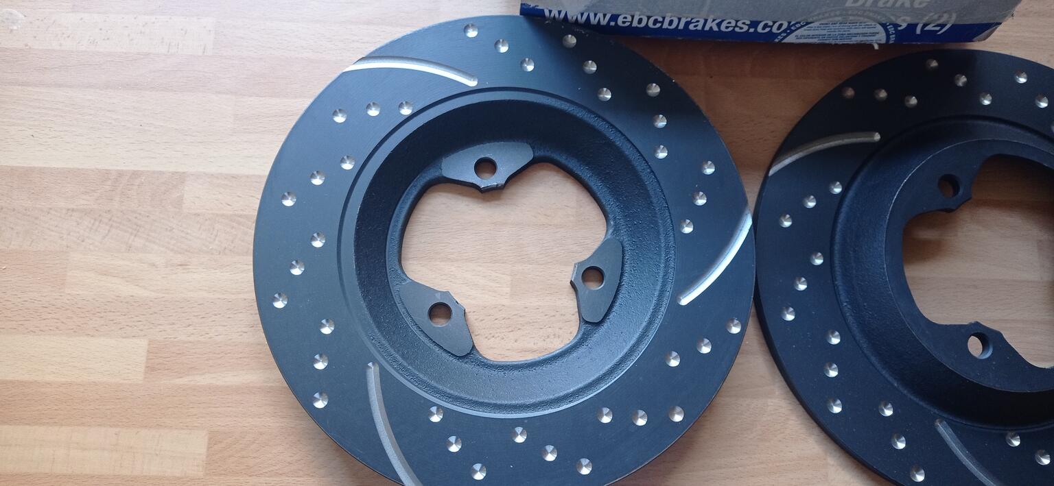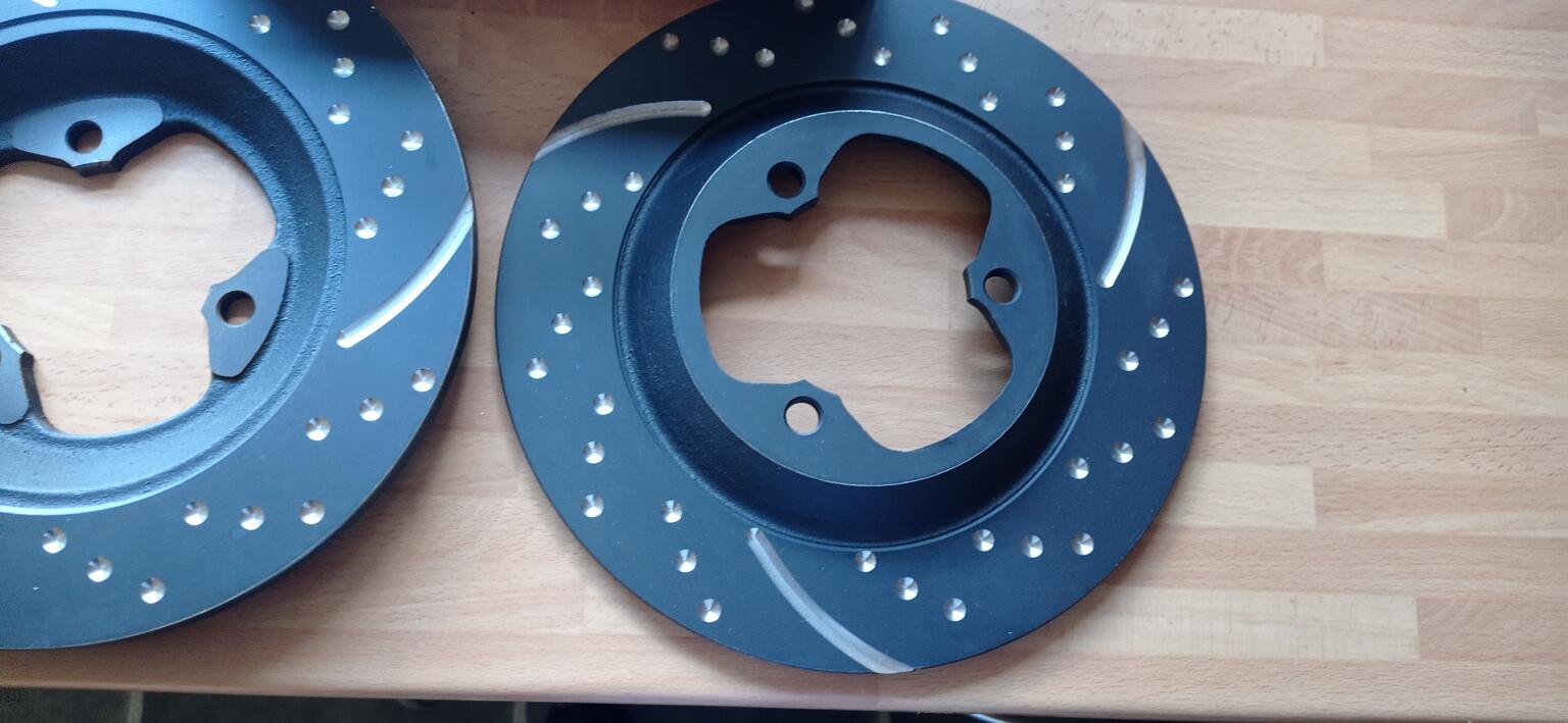 Kelvdon have a drilled disc not grooved at £150 + vat a pair