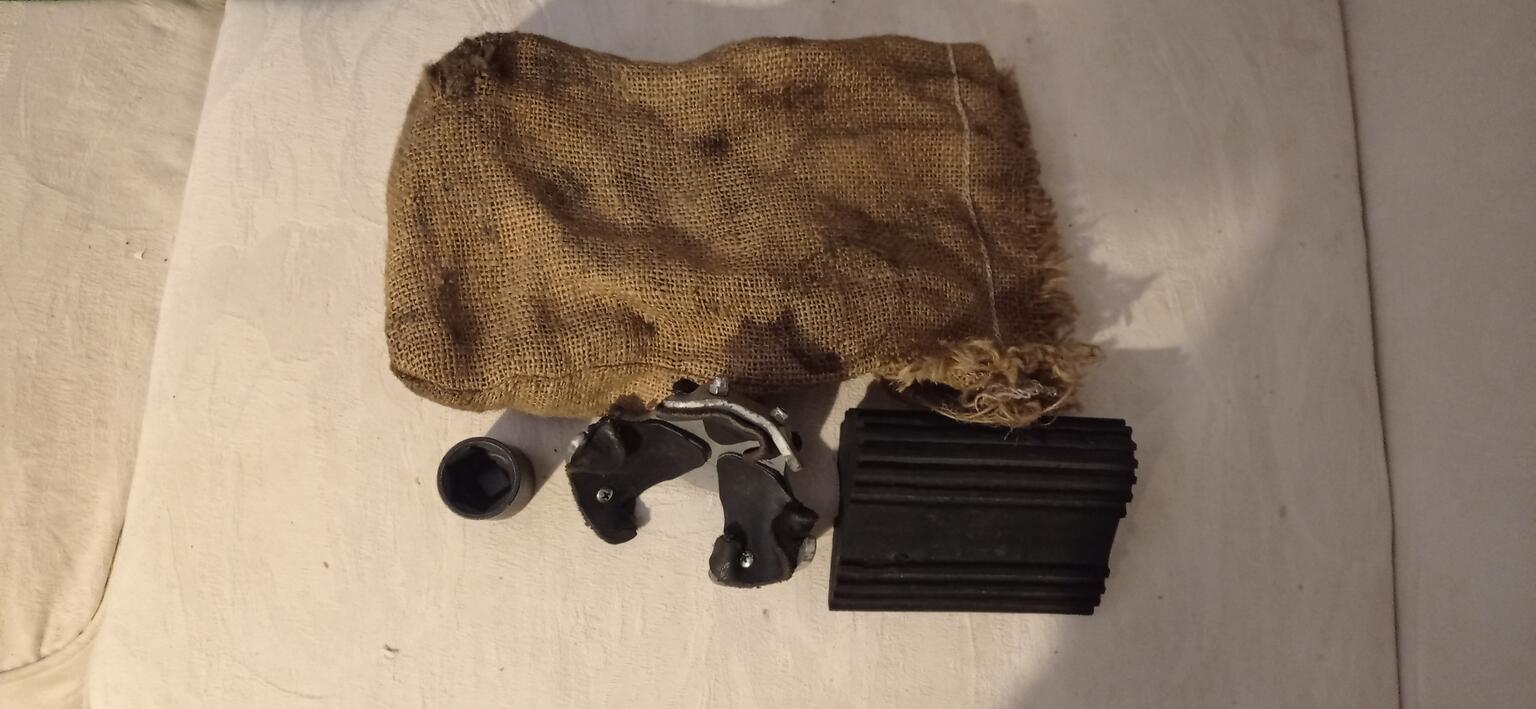 The fully inclusive kit comes with spinner attachment, socket, wheel chock and a wonderful sacking bag , believed hand stitched and possibly part of Fria Tucks cassock.